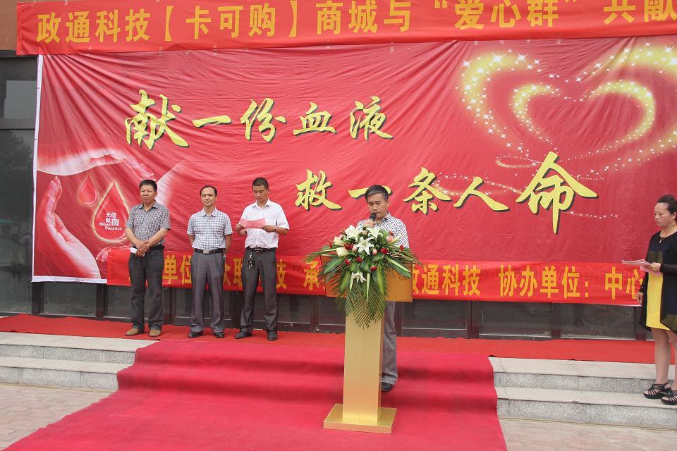 2014年6月29日上午,由我公司主辦,邢臺政通科技公司承辦,市中心血站協(xié)辦,由“愛心網(wǎng)”網(wǎng)友共同參與的“愛我牛城,捐我熱血”大型獻(xiàn)血活動于邢臺市開發(fā)區(qū)創(chuàng)智園廣場隆重舉行,我公司總經(jīng)理曹利栓作為主辦方代表發(fā)表了講話。